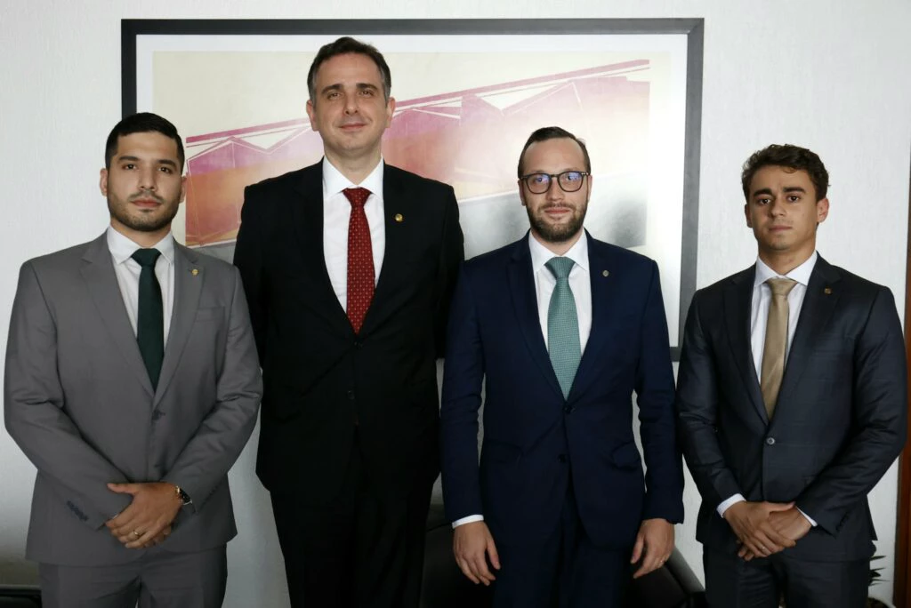Nesta quarta-feira (22), os deputados federais André Fernandes (PL-CE), Filipe Barros (PL-PR) e Nikolas Ferreira (PL-MG) se reuniram com o presidente do Senado, Rodrigo Pacheco (PSD-RO) para tratarem sobre a Comissão Parlamentar Mista de Inquérito que irá investigar os atos de 8 de janeiro.