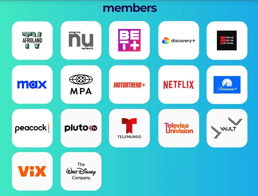 A Aliança reúne grandes players do setor, como Paramount+, Warner Bros, Discovery, HBO Max, Comcast’s Peacock, Disney, TelevisaUnivision e Univision’s ViX.