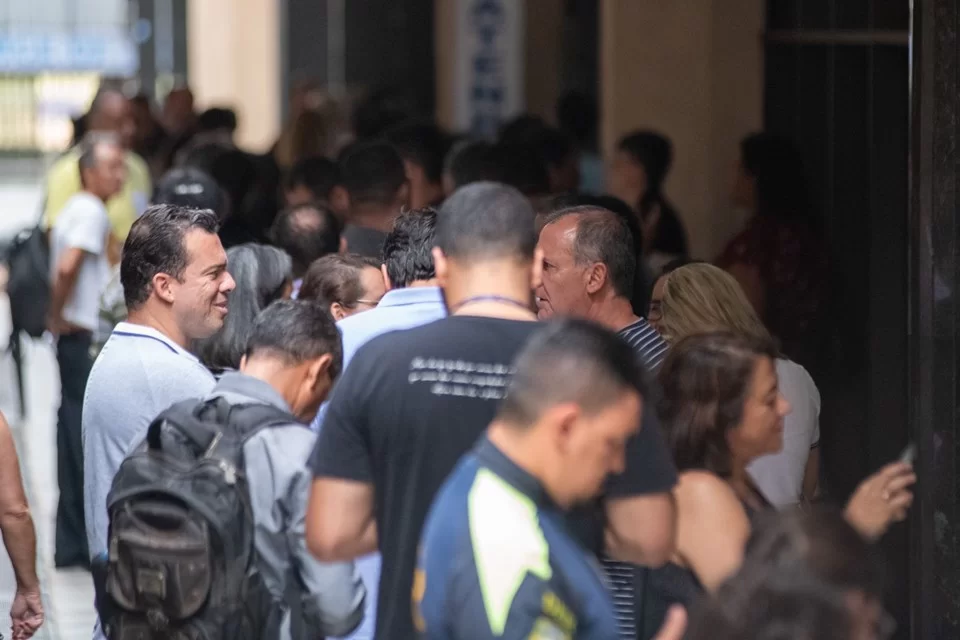 O caos se formou em frente à sede Sindser. A entidade teria disponibilizado apenas a opção presencial para cancelar o desconto de 1% no salário, em horários apertados: de 10h às 11h30 e de 14h às 16h.